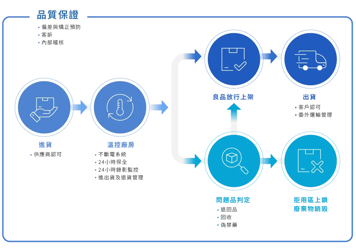 - 專業 GDP 倉儲中心,24H 環境監控
